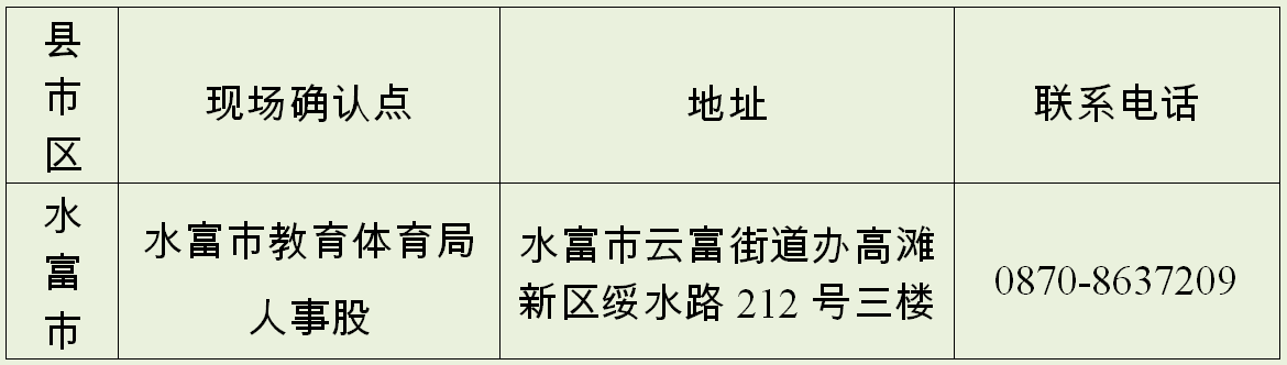 考生注意事项:现场确认须到申请人户籍或居住所在地教育体育局进行确认。咨询电话如下: