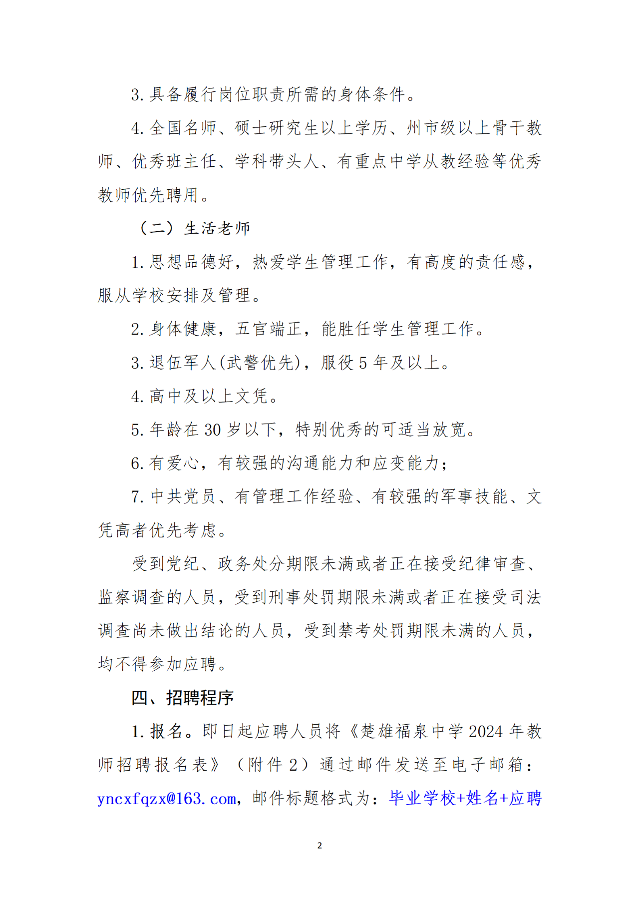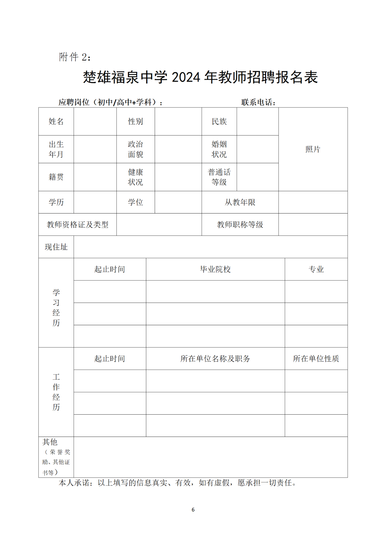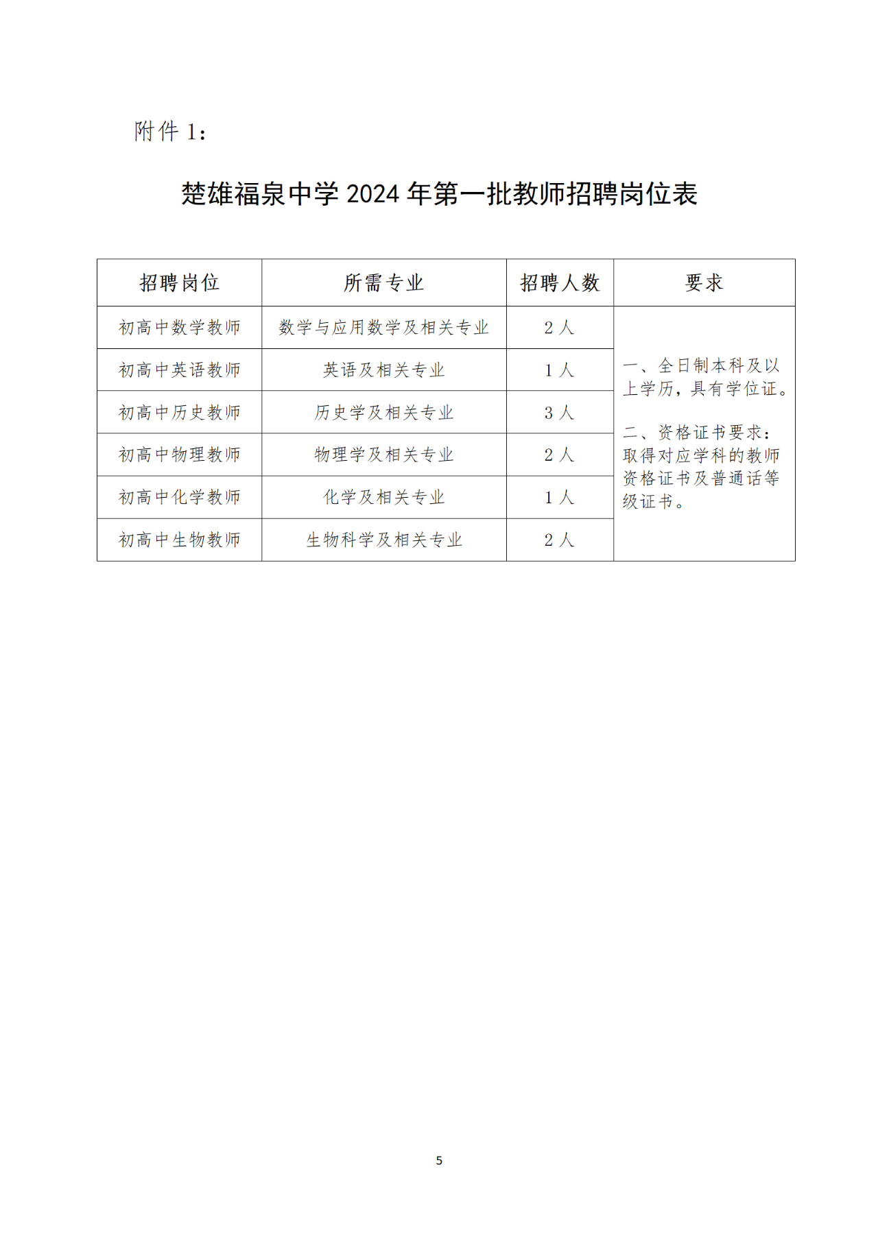 楚雄福泉中学2024年第二批教师招聘公告