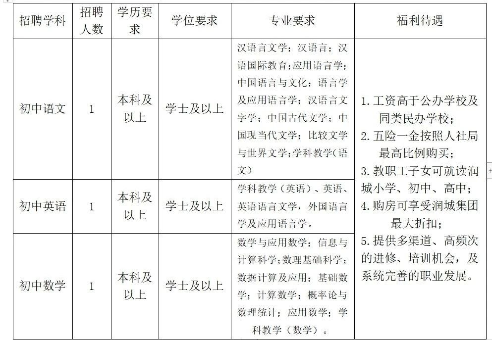 3.教职工子女可就读润城小学、初中、高中;