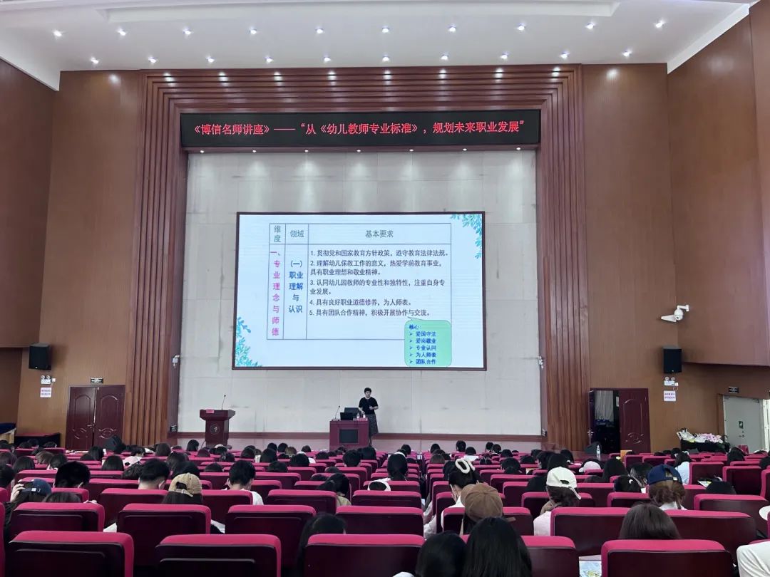6月28日中午,博信教育关于学前教育专业《名师讲座》在昆明幼儿师范高等专科学校综合楼报告厅内成功举行。本次讲座邀请到昆明市著名专家唐敏教授作“从《幼儿教师专业标准》,规划未来职业发展”专题讲座。讲座由博信教育培训事业部负责人蒋传娟主持,23级学生400余人通过线下形式,参与学习、交流。