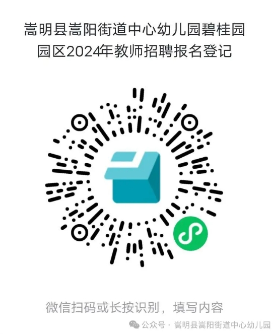 有意向加入我园并且符合条件的,请用微信识别二维码填写招聘岗位报名登记表。