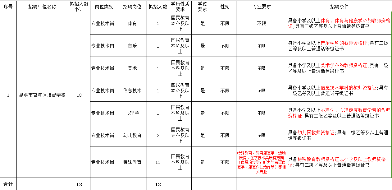 昆明市官渡区培智学校2024年聘用制教师招聘公告