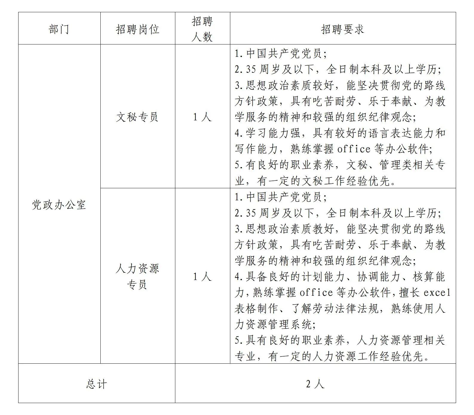 二、招聘计划