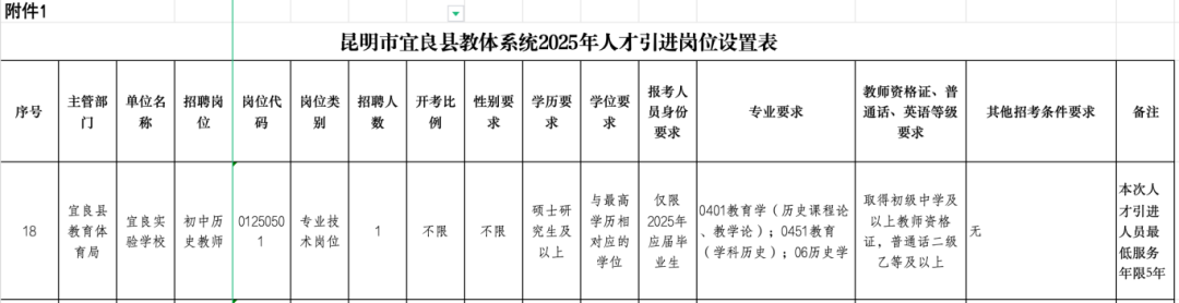 4.具备岗位所需要的其他条件,具体详见《昆明市宜良县教体系统2025年人才引进岗位设置表》(附件1)。