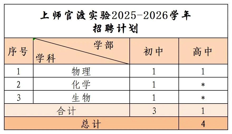 上海师范大学附属官渡实验中学物化生教师招聘啦!