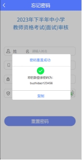 若忘记登录密码,可点击登录页的“忘记密码?”链接,重置密码。密码重置后,考生可复制新密码进行登录。