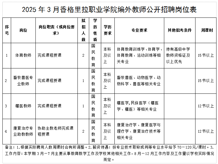 因学校工作需要,香格里拉职业学院面向社会公开招聘6名编外教师,现将有关事项公告如下: