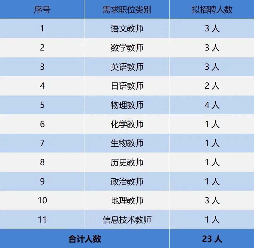 此次招聘涉及高中阶段所有文化科目教师,拟招聘23名,以满足学校课程设置和教学需求,具体人数根据考核实际情况确定。此外,具有特殊技能,如熟练掌握AI、DeepSeek等人工智能技术者也可报名应聘。
