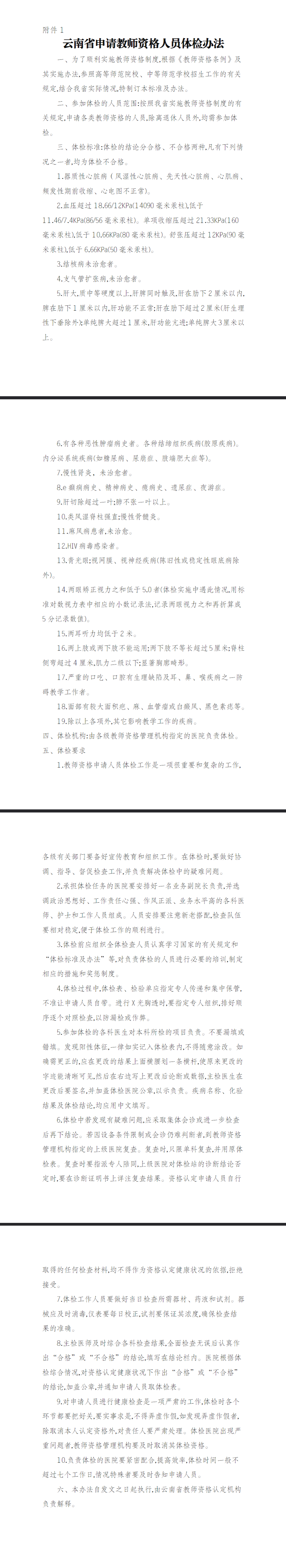 1.云南省申请教师资格人员体检办法