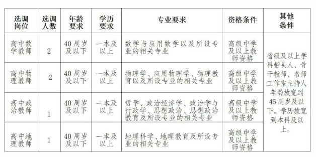 (4)具有一本及以上学历,其中省级及以上学科带头人、骨干教师、名师工作室主持人放宽到本科及以上;具有选调岗位所需的专业或任职资格、职业(执业)及技能要求,近三年年度履职考核结果均为合格及其以上,身体健康。
