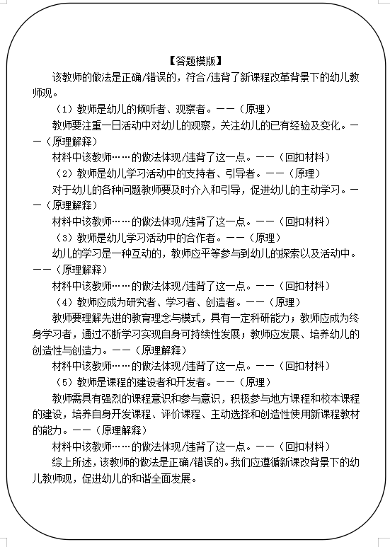 1.表明观点:先表述教师做法正确与否,是否符合新课改的幼儿教师观