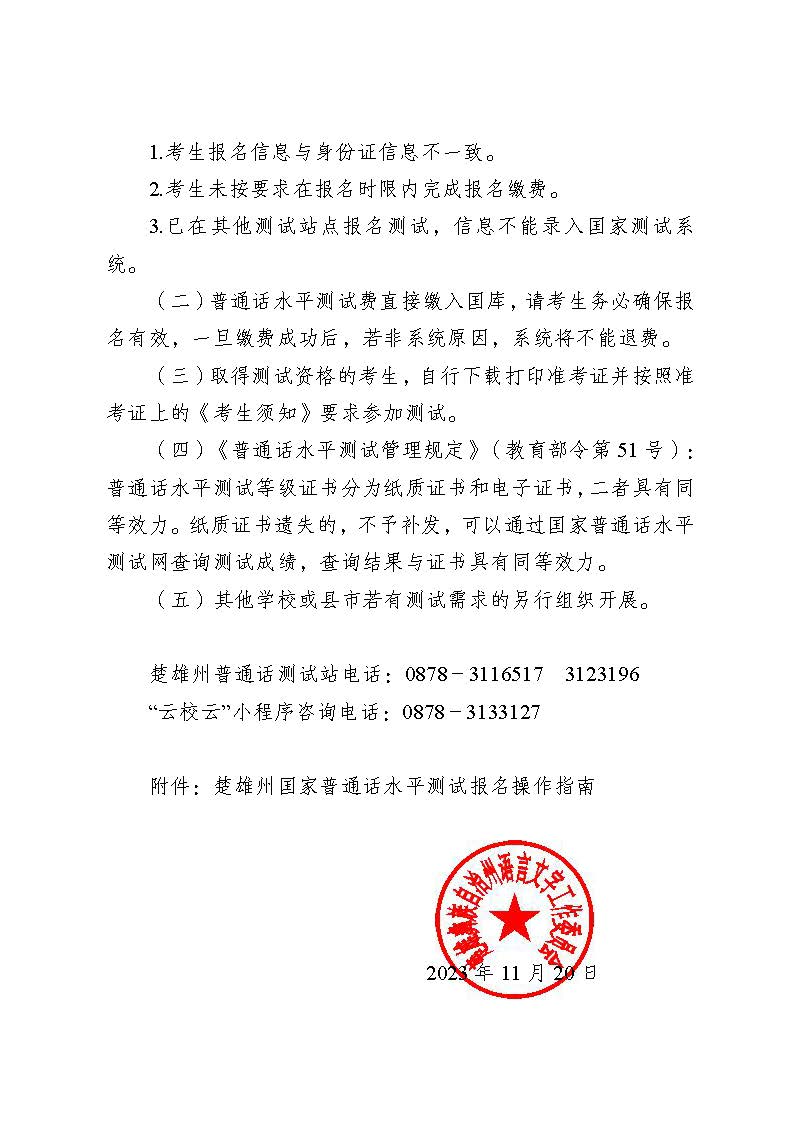 楚雄州2023年12月国家普通话水平测试公告