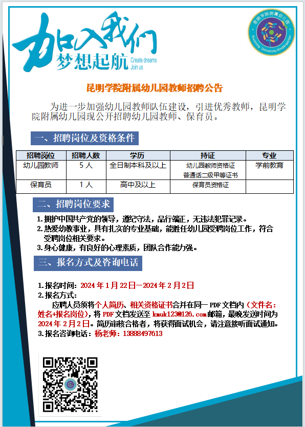 请应聘者请带齐以下材料8:30到达昆明学院附属幼儿园(洋浦校区内)参加面试: