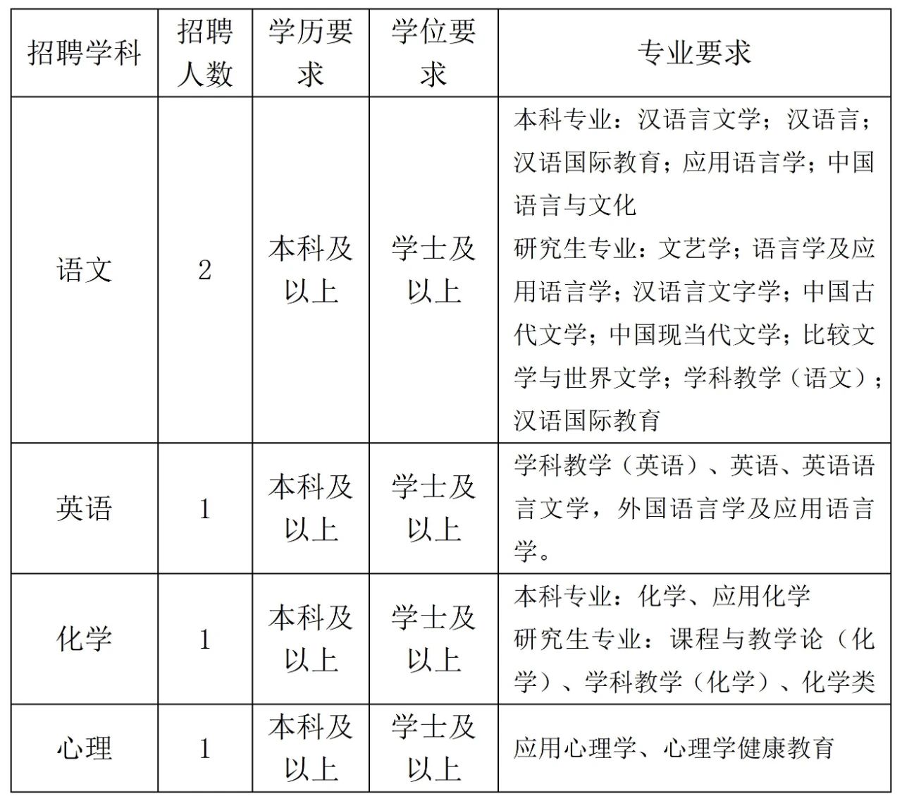 初中教师岗位需求: