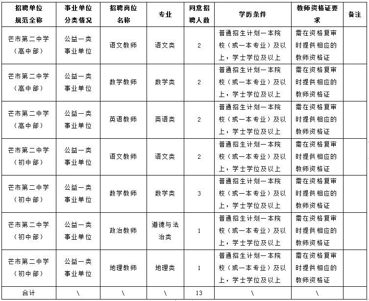 根据《德宏州人力资源和社会保障局关于印发 2024年教育卫生部门考核招聘紧缺专业学科优秀人才工作方案的通知》(德人社发〔2024〕2号)和《2024年芒市教育部门考核招聘紧缺专业学科优秀人才工作方案》要求,2024年芒市第二中学考核招聘紧缺专业学科优秀人才13人。
