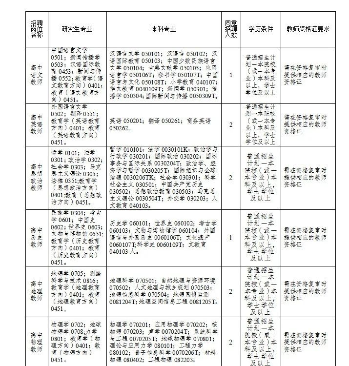 2.普通招生计划一本院校(或一本专业)及以上学历2022年、2023年、2024年优秀毕业生,所学专业与招聘教学岗位要求相符(未在编在岗,在校期间总体成绩优异,所学专业必修科目无挂科且须在资格复审时提供相应的教师资格证)。
