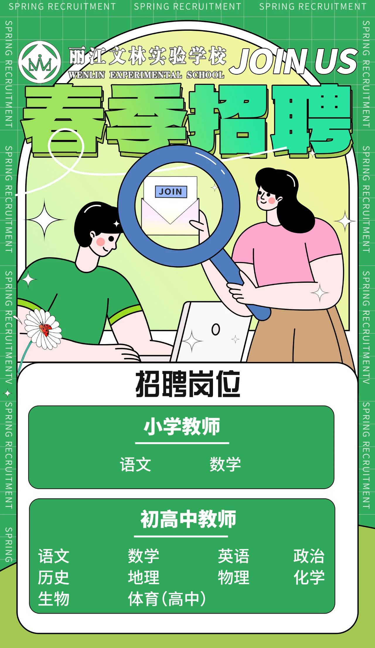丽江文林实验学校正在蓬勃发展中,是有志于教育事业的教师大展拳脚的舞台,也是每一位文林人彰显个人价值,实现职业突破发展的宝贵机会,丽江文林实验学校正敞开胸怀,等待愿意展现自我、超越自我的你。