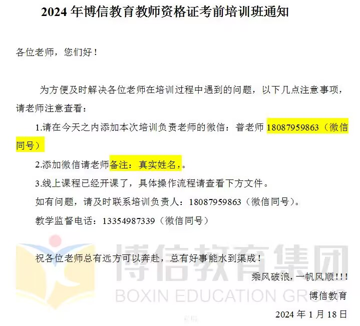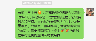 在整个培训过程中,参训老师收获满满,能利用线上学习的灵活方式和空余时间学习备考,重要时间节点有博信教育负责老师微信提醒,经过一个月的学习,对教师资格证考试内容有了很多掌握,很感谢本次提供了这样既方便,又务实的考前培训机会。