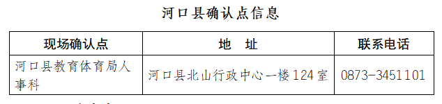 红河学院应届毕业生、民族师范学校应届毕业生到设在本校的现场确认点进行现场确认。现场确认时间及地点由学校自行安排,申请人应以学校通知为准,但现场确认工作必须于本公告中现场确认时间内完成。其余符合条件的红河州辖区内普通高校往届毕业生到学校所在属地教育体育局确认点确认,请注意关注相关确认机构的公告。