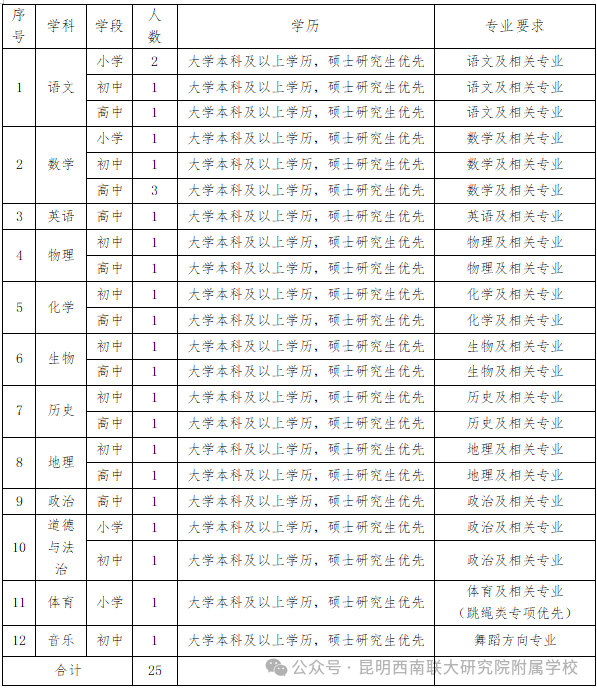 昆明西南联大研究院附属学校2024年教师招聘公告