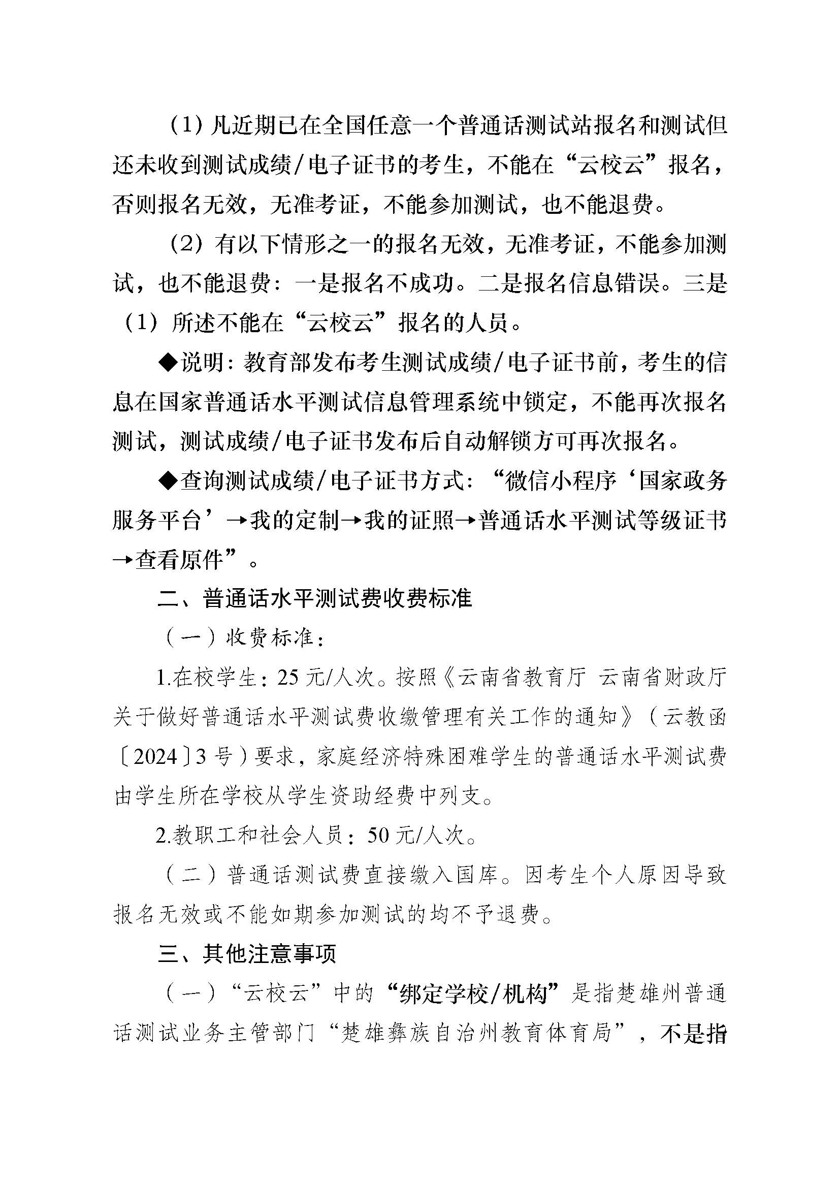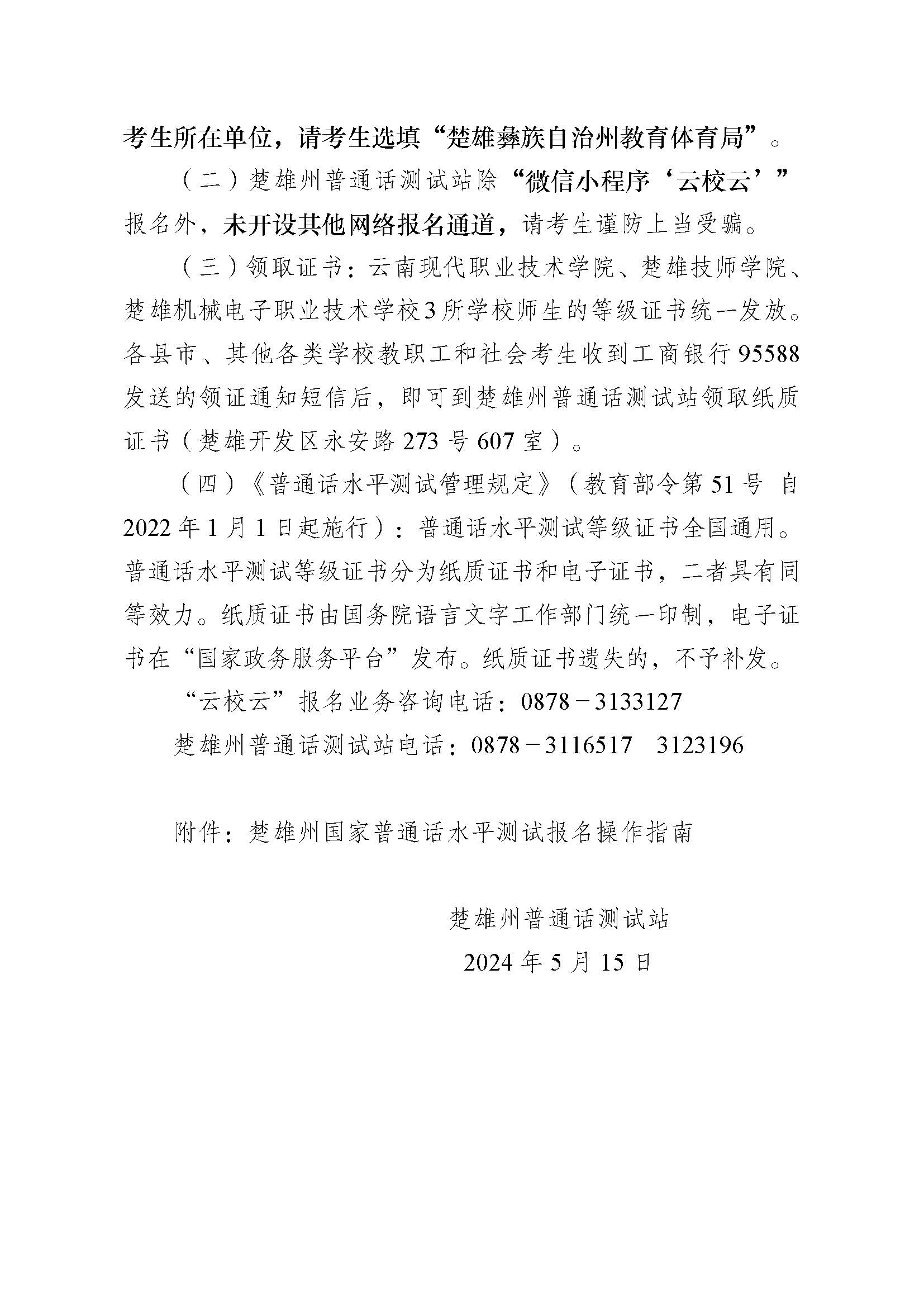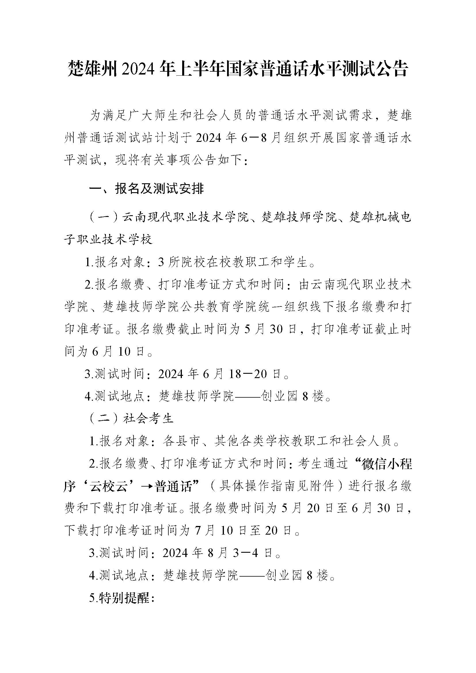 楚雄州2024年上半年国家普通话水平测试公告
