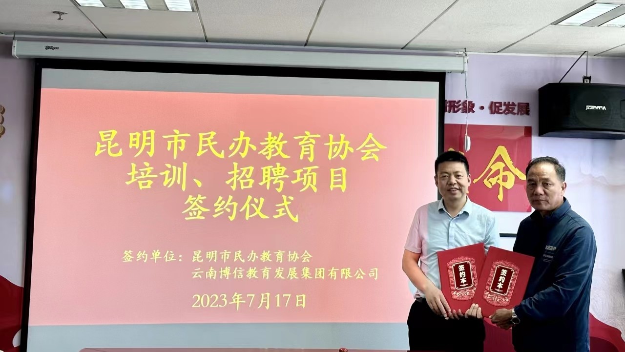 签约仪式在资玉国调研员的见证下举行,唐丕权会长代表昆明市民办教育协会,王宏刚董事长代表云南博信教育发展集团有限公司,签署了《委托协议书》,并委托国信公正服务公司对《委托协议书》的真实性和有效性进行了公正。双方代表表示,将齐心协力,携手共进,共同把服务做好,为昆明市稳就业工作尽微薄之力。