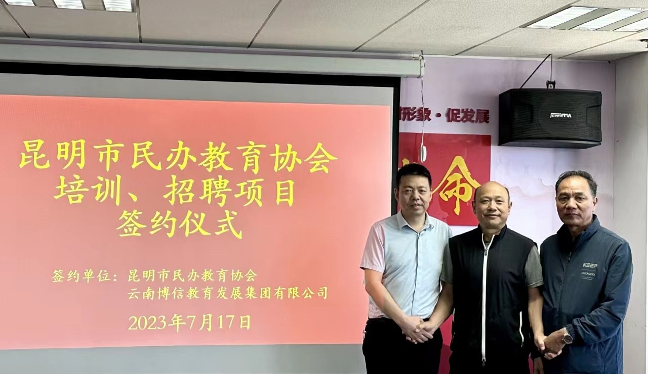 为深入贯彻落实全国稳就业工作电视电话会议和云南省稳就业工作电视电话会议精神,解决高校毕业生就业难、民办学校招聘难及民办学校招聘、培训人才成本高、流动性大的问题,昆明市民办教育协会与云南博信教育发展集团有限公司就招聘服务项目和培训服务项目委托事宜,举行了签约仪式,昆明市教育体育局原一级调研员资玉国同志、昆明市民办教育协会唐丕权会长、云南博信教育发展集团有限公司王宏刚董事长参加会议。