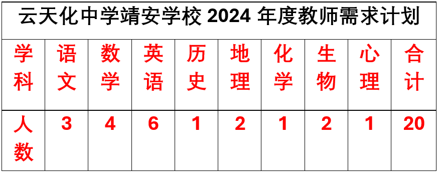 2024年云天化中学靖安学校招聘简章