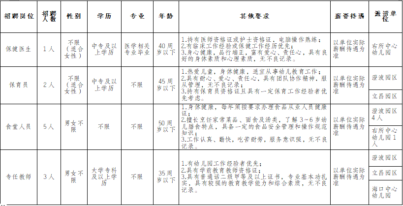 三、招聘计划、岗位条件及薪资待遇