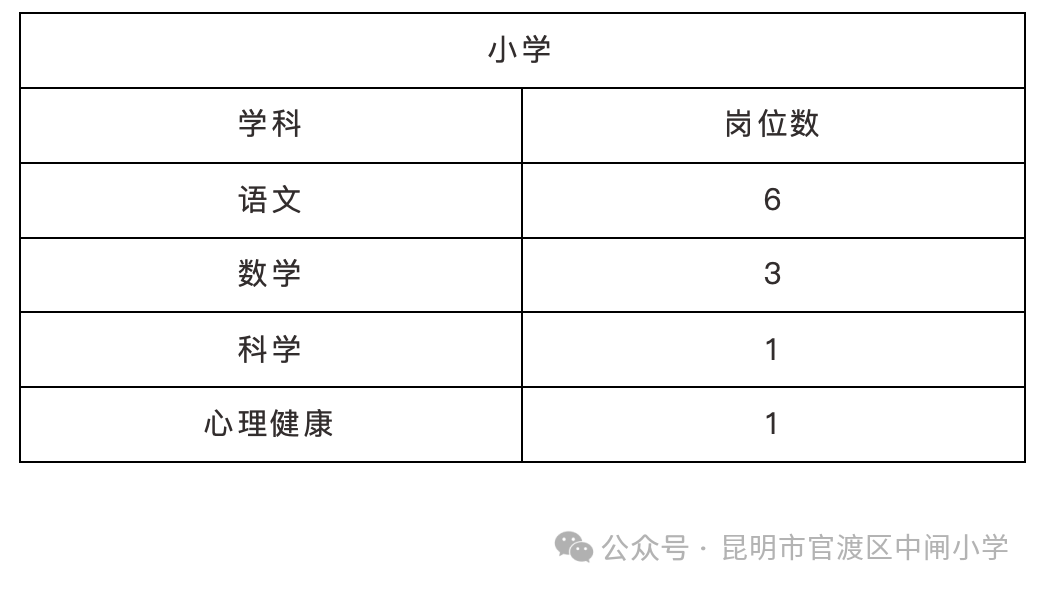 官渡区中闸小学2024年教师招聘公告