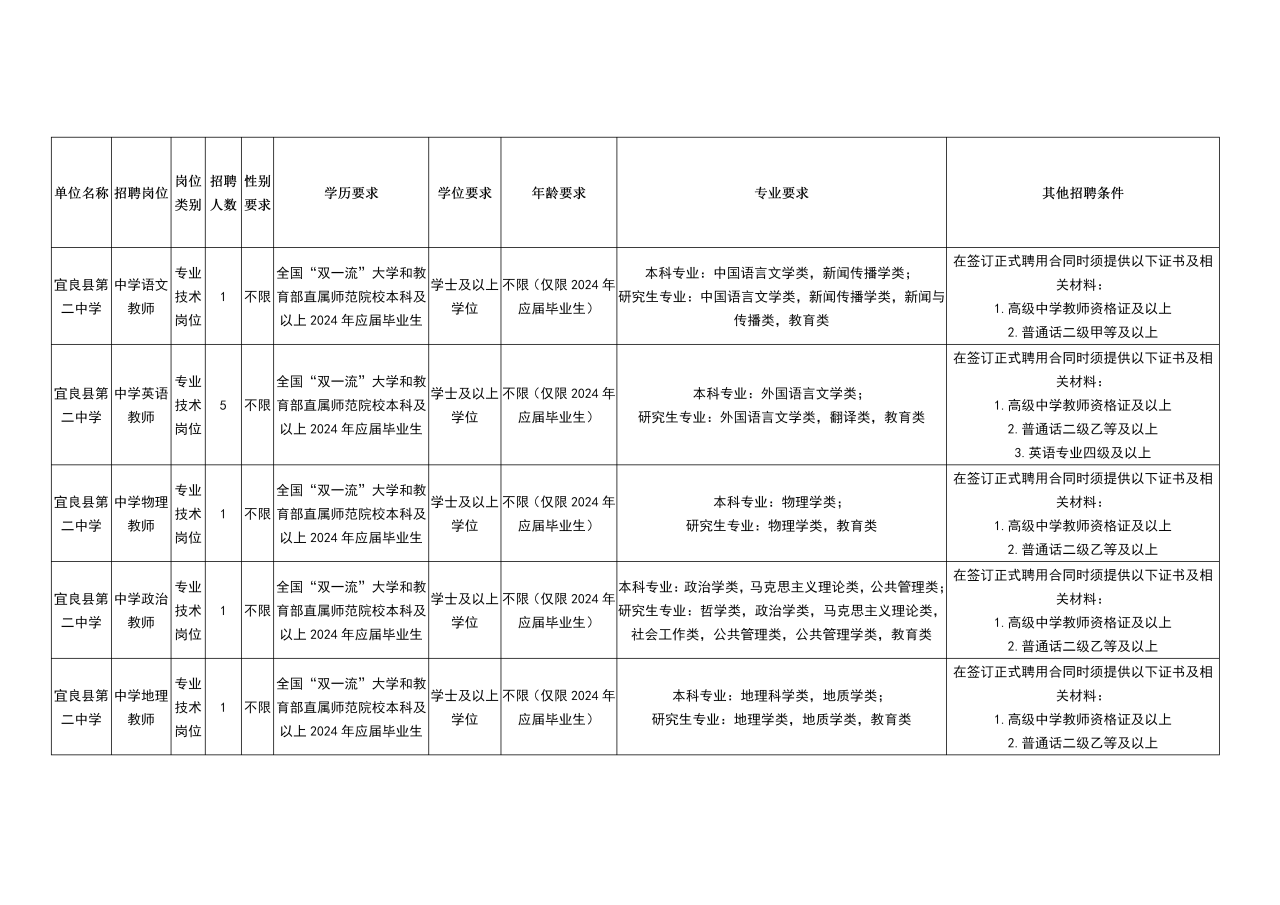 2024年昆明市宜良县中学教师招聘公告