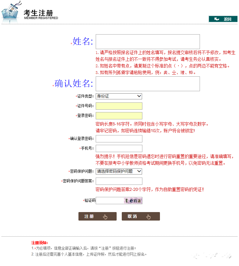 第二步:注册。笔试报名前,考生须(重新)注册取得网报系统登录密码(账号为本人姓名及身份证号)。