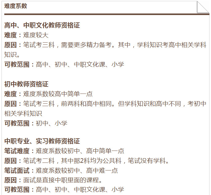 5.中职文化课教师资格考试的面试科目同高级中学,中职专业课、中职实习指导教师资格考试的面试科目根据考生的专业选报相应的科目。