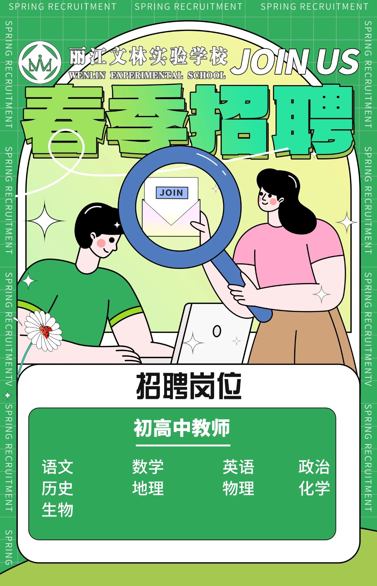 丽江文林实验学校正在蓬勃发展中,是有志于教育事业的教师大展拳脚的舞台,也是每一位文林人彰显个人价值,实现职业突破发展的宝贵机会,丽江文林实验学校正敞开胸怀,等待愿意展现自我、超越自我的你。