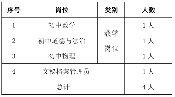 根据学校发展需要,决定面向社会招聘教师4人,具体如下: