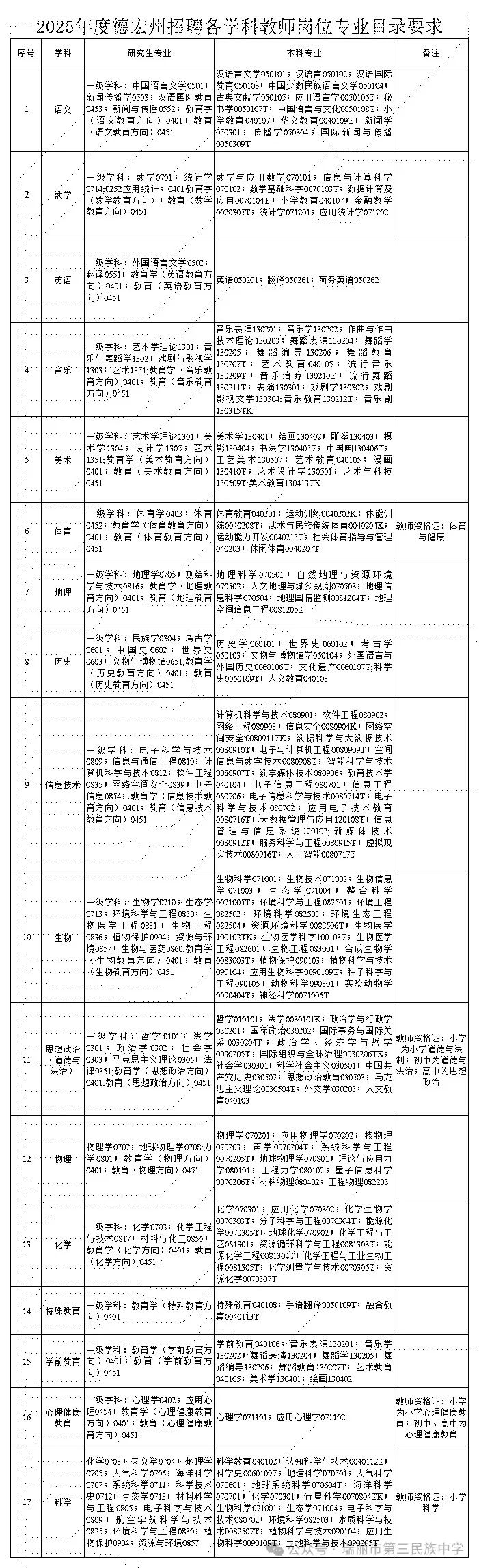 3.部分岗位学历条件有变化的以《2025年德宏州教育部门考核招聘紧缺专业学科优秀人才岗位计划表》所列为准。
