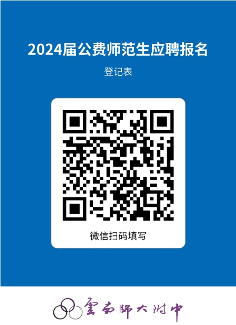 应聘人员可直接持简历到云南师大附中校办公室报名,也可由他人代为报送材料或通过邮递方式报名(信封上需注明应聘材料),并在云南师大附中公费师范生招聘报名系统(http://www.ynsdfz.net/bm.html或扫二维码)里填写个人信息。