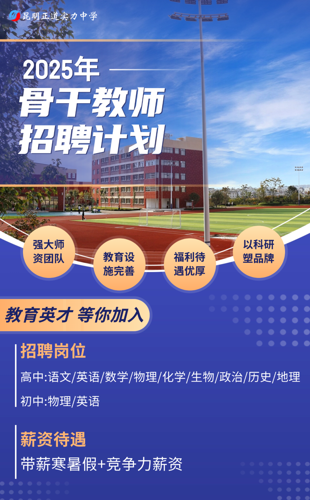 高薪诚聘|昆明正道实力中学2025年教师招聘,职等你来!