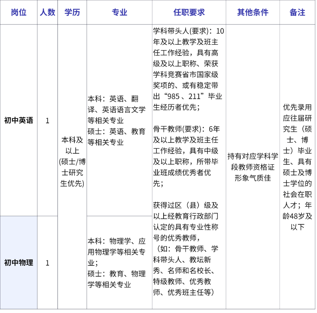 1.能胜任班主任工作者优先,热爱教育事业,遵纪守法,品行端正,有事业心、有责任感、身心健康,无传染疾病,形象气质佳