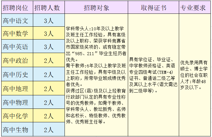 学科带头人:综合年薪30万—40万,多年教学及班主任管理经验,具有高级及以上职称、荣获学科竞赛省市国家级奖项的、或有稳定带出“985 、211”毕业生经历者优先,综合年薪可面议。