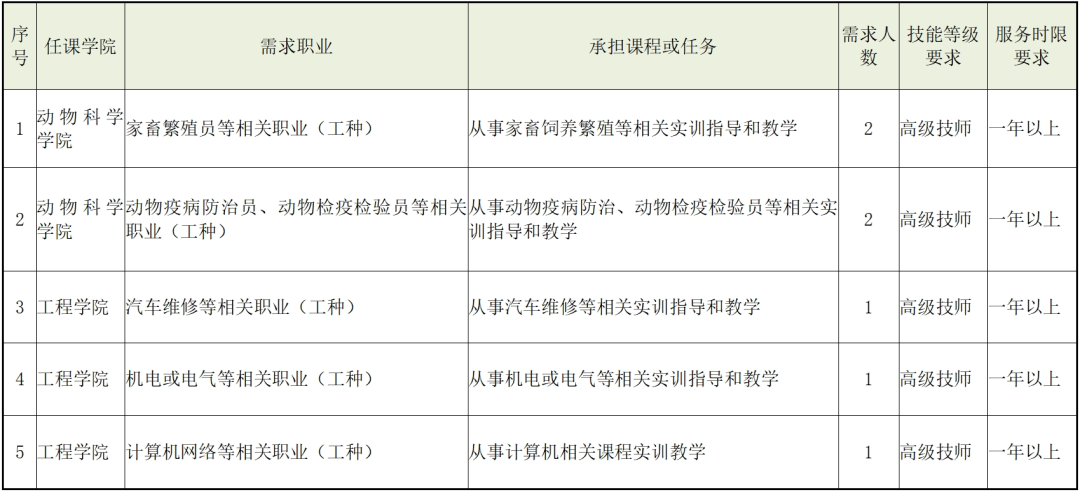 大理农林职业技术学院招募2025年“银龄教师”7名。具体招募岗位及招募资格条件如下: