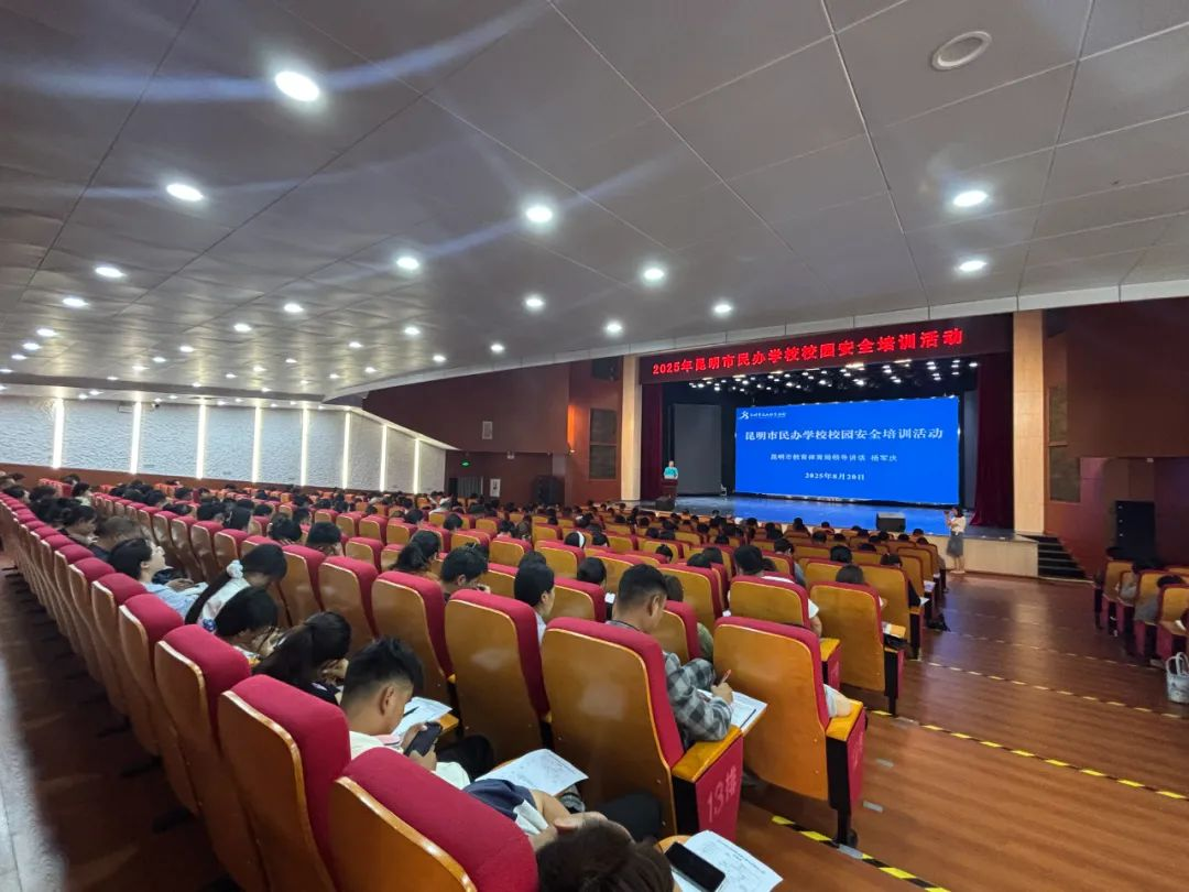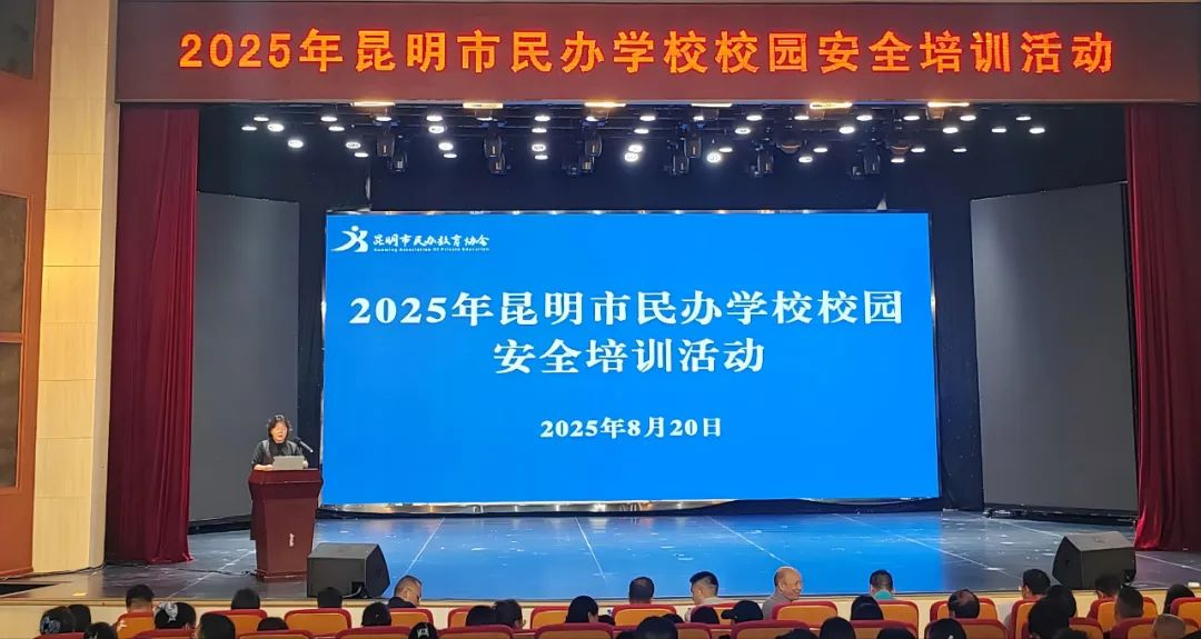 新修订的《云南省学校安全条例》将于2025年9月1日正式施行。为深入学习贯彻《云南省学校安全条例》,切实提升全市民办学校校园安全管理水平,有效防范化解各类安全风险,织密筑牢校园安全防线。在昆明市教育体育局的指导下,2025年昆明市民办学校第二期校园安全培训活动于8月20日在昆举行。昆明市民办教育协会会员单位以及来自昆明市各县(市)区380余家民办学校(幼儿园)的校(园)长、举办者、校园安全管理工作负责人参加培训。
