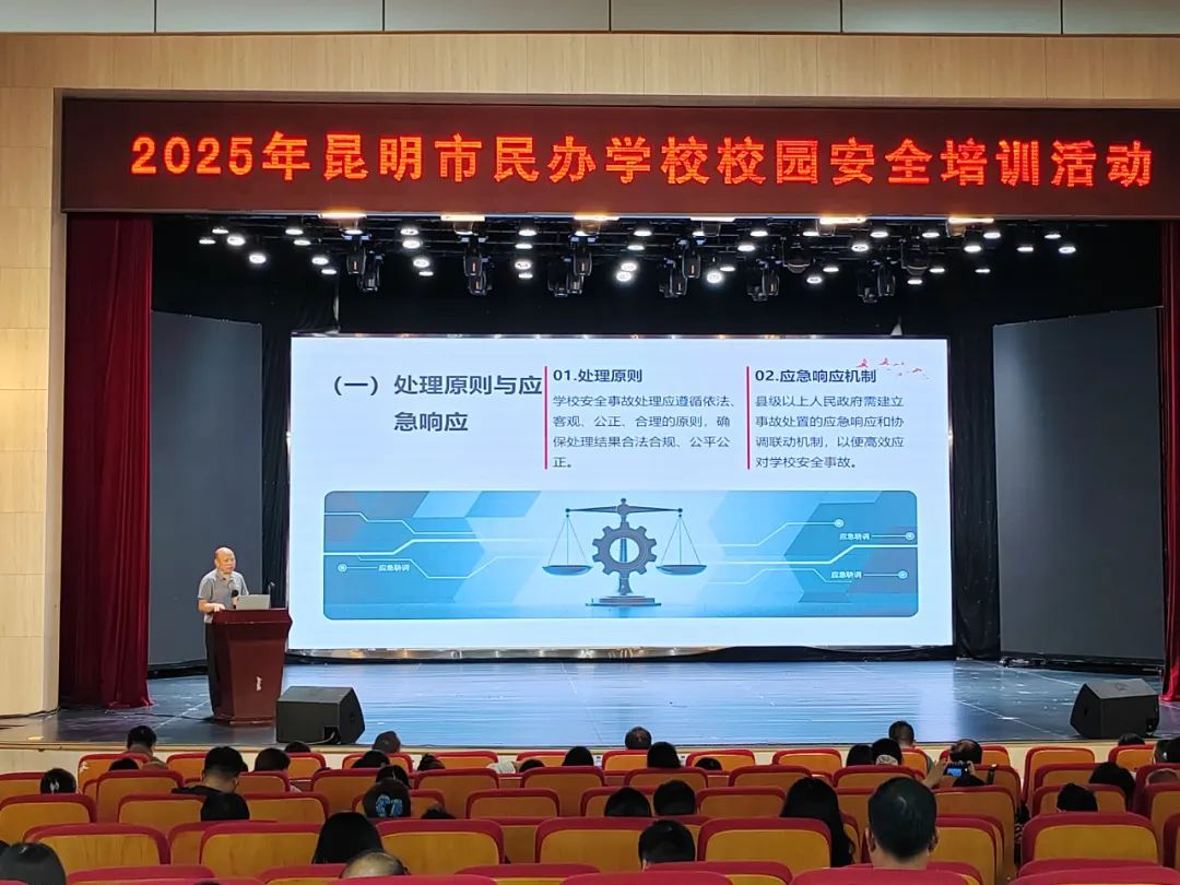 本次昆明市民办学校校园安全培训活动以《云南省学校安全条例》施行为契机,聚焦民办学校校园安全管理工作的重点、难点,通过条例解读、实务指导、案例剖析等多种形式,赋能学校安全管理,为学校健康、稳定、可持续发展提供坚实的安全保障。希望各民办学校通过此次培训,进一步强化安全意识,夯实校园安全管理基础,为新学期各项工作顺利开展开好头、起好步。