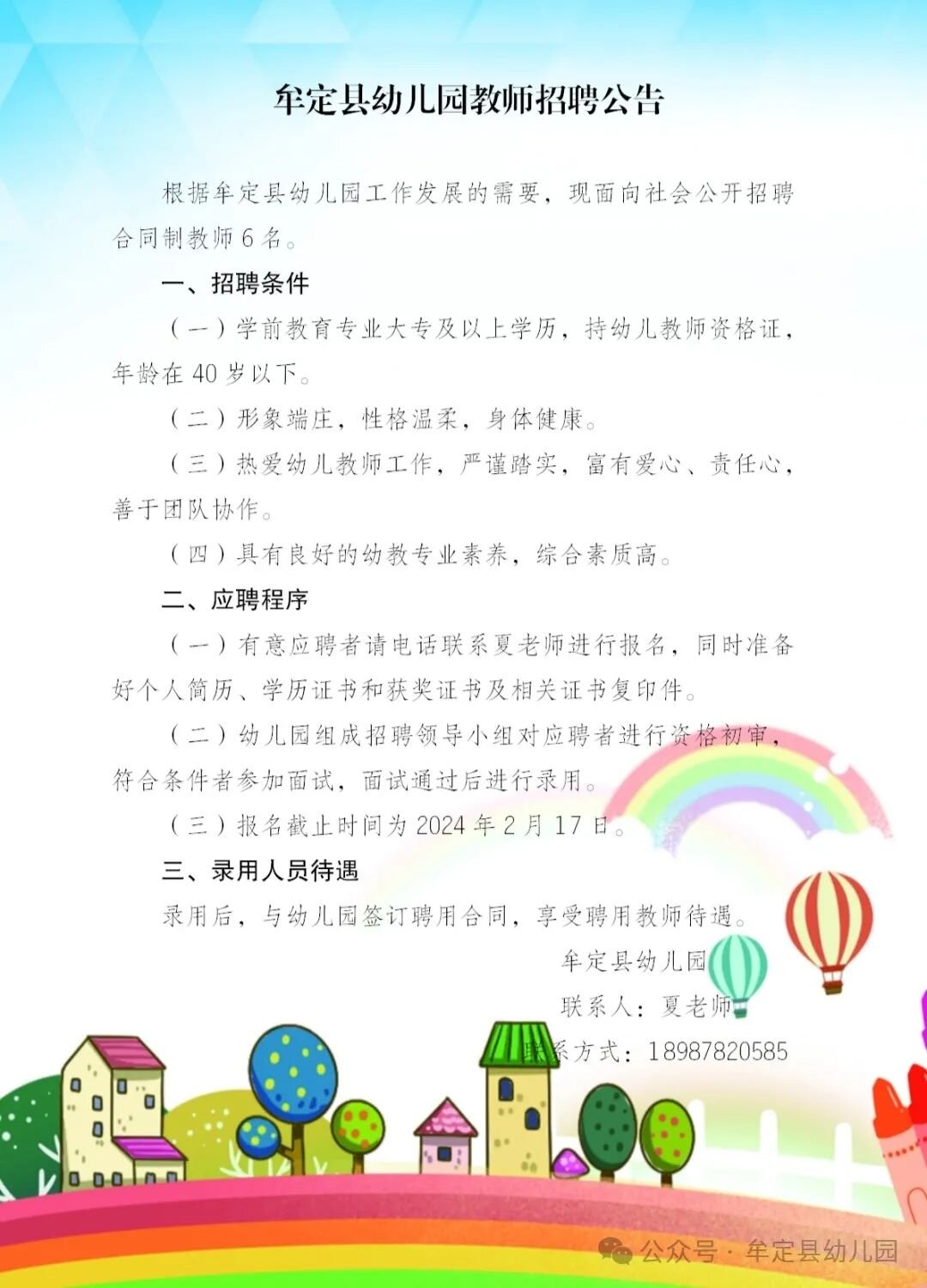 2024年楚雄州牟定县幼儿园教师招聘公告
