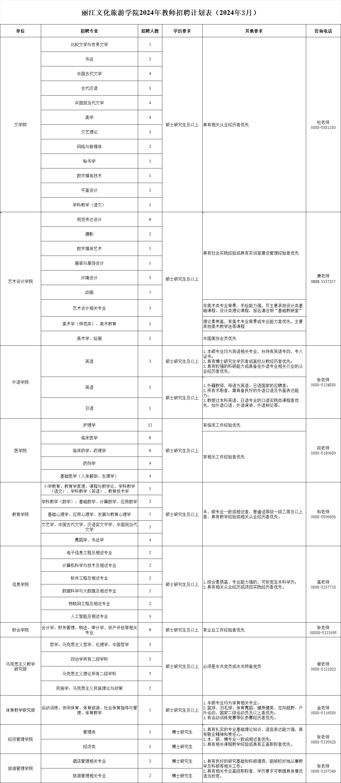 2024年3月丽江文化旅游学院(原云南大学旅游文化学院)招聘公告