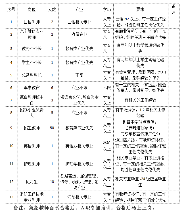 3.具备从事相关工作的知识水平和能力,岗位所需的任职资格、职业(执业)资格及技能要求,能胜任实际操作课程。