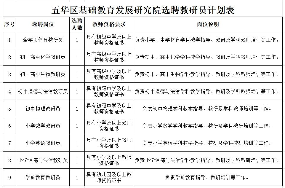 为贯彻落实上级关于基础教育工作相关精神,按照“优化结构,激发活力,常态流动”的思路,现决定开展五华区基础教育发展研究院教研员选聘工作。