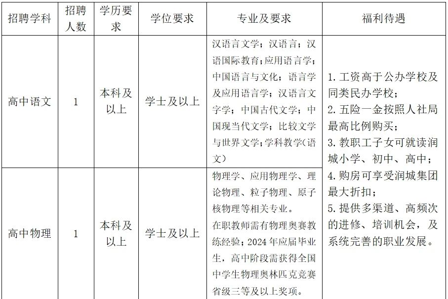 昆明润城学校2024年秋季学期招聘公告
