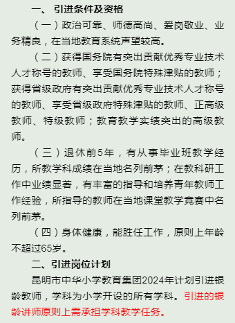 昆明市中华小学教育集团2024年引进银龄讲师公告