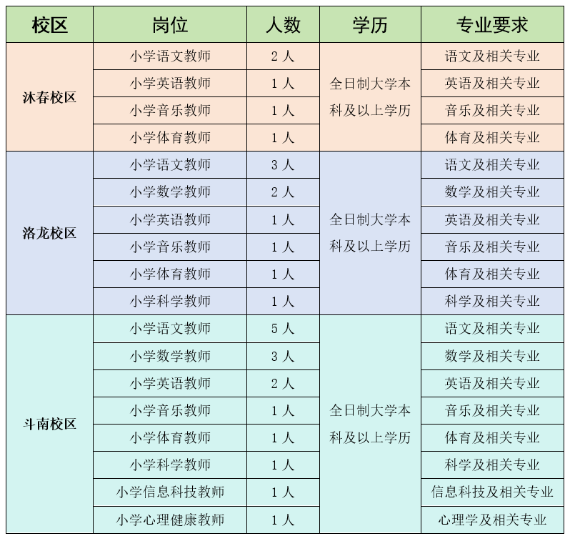 经教育主管部门同意,根据学校2024年建设发展需要,现面向社会公开招聘聘用制教师29人,其中,沐春校区5人,洛龙校区9人,斗南校区15人。